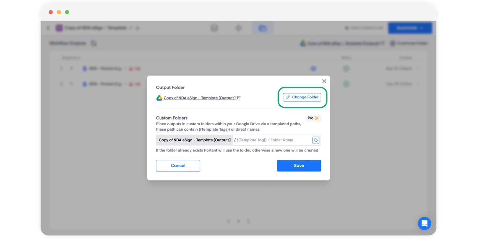 When your automation runs, if there is already a folder with the same name (from a previous automation), Portant will NOT create a new folder. It will use this folder to save the documents in.