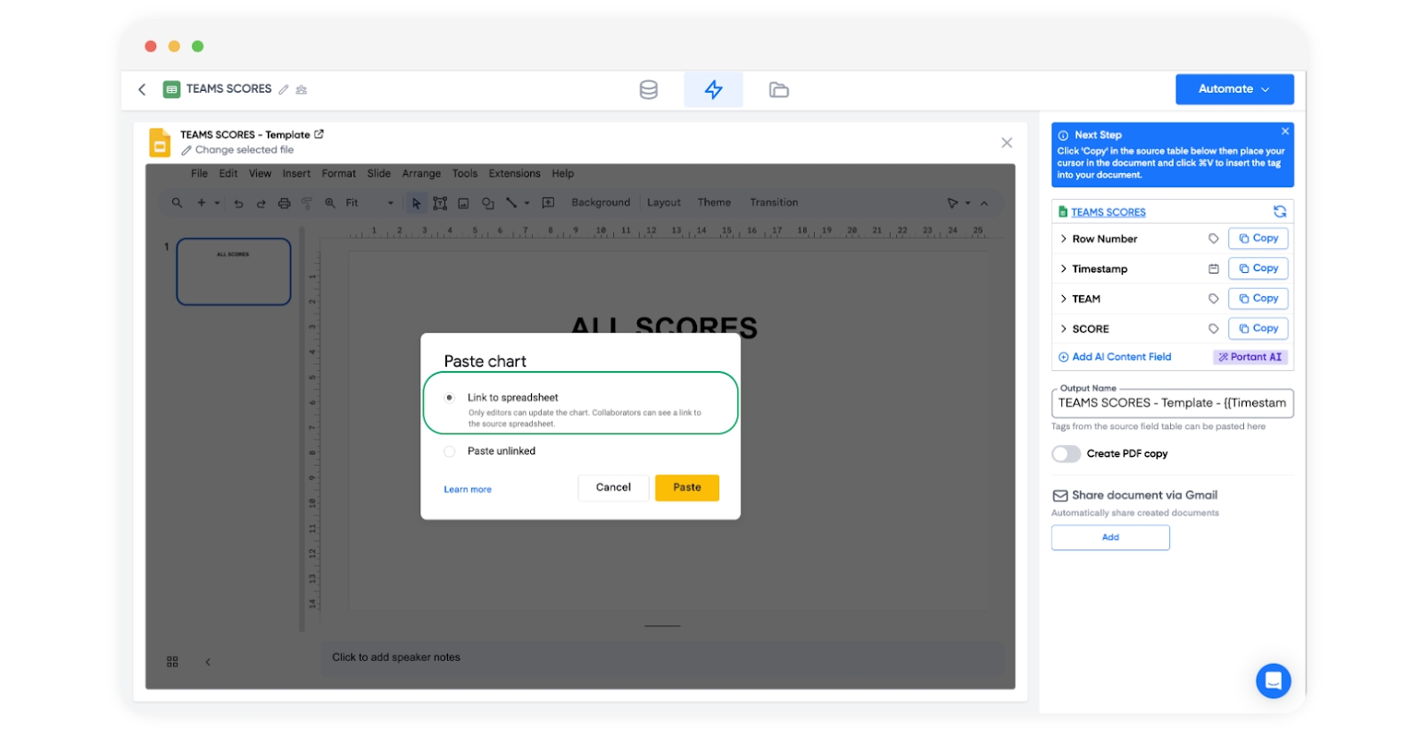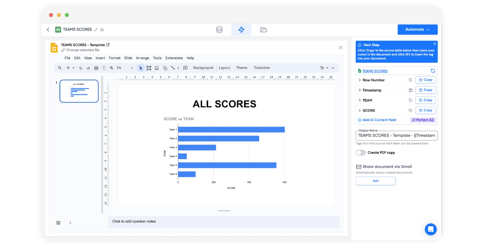 In this article, we will jump straight to adding a Google Sheets chart to a Google Slides template. However, if this is your first time creating a workflow, please refer to this article to learn more.
