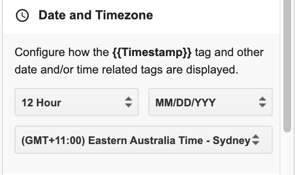 Timezone, date and time format settings