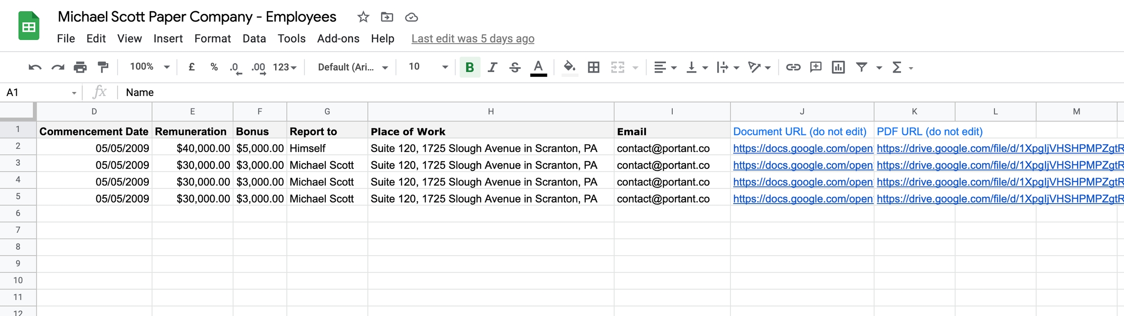 Document Links - When selected, Portant will automatically insert document (and pdf) URLs next to the last column in your responses spreadsheet.