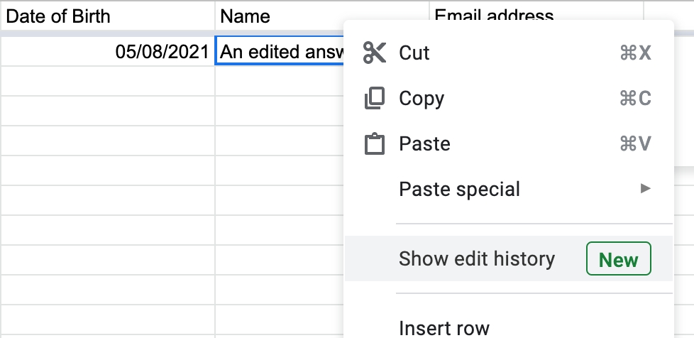 Note - this will edit the original response row in your Responses Spreadsheet, it will not create a new row.