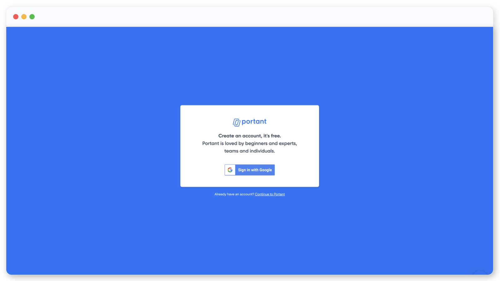 If you don't already have a Portant account, you can sign up for one for free here: app.portant.co/signup