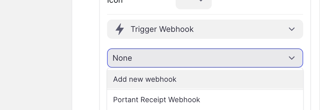 The next step is to add values to be sent in the Webhook. The values you have access to will depend on your context. (You should also name the values so it's clear how to use the data in Portant)