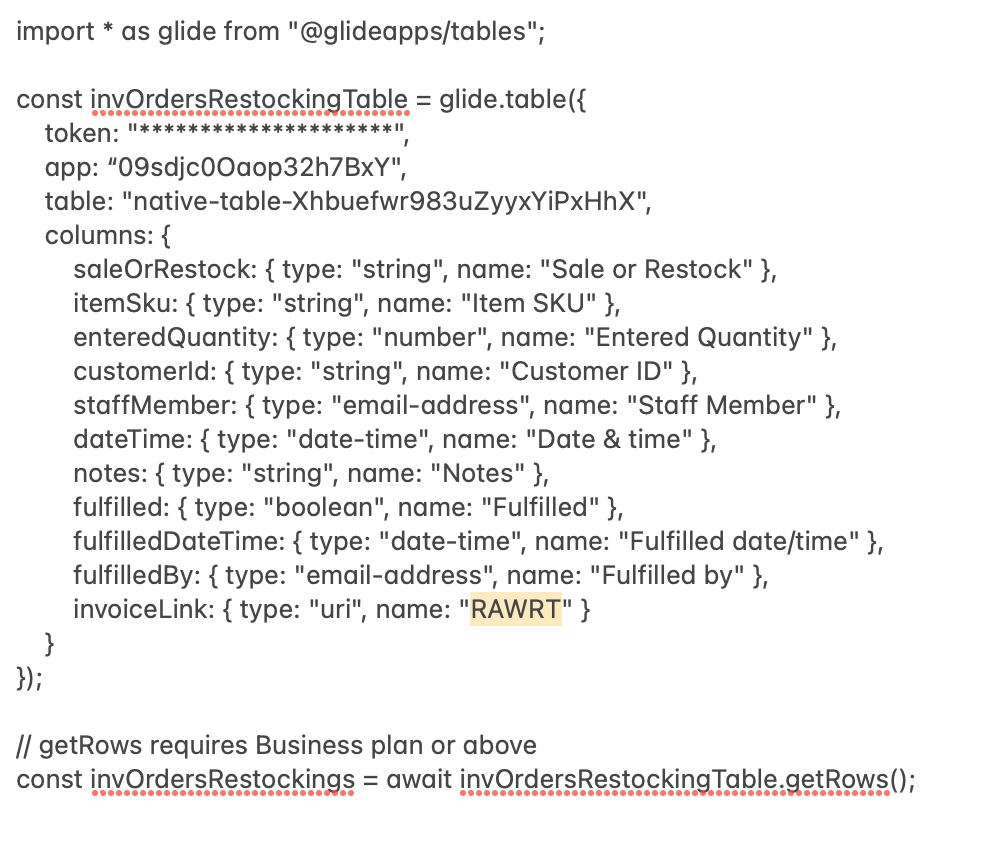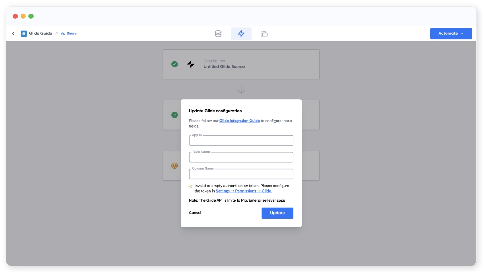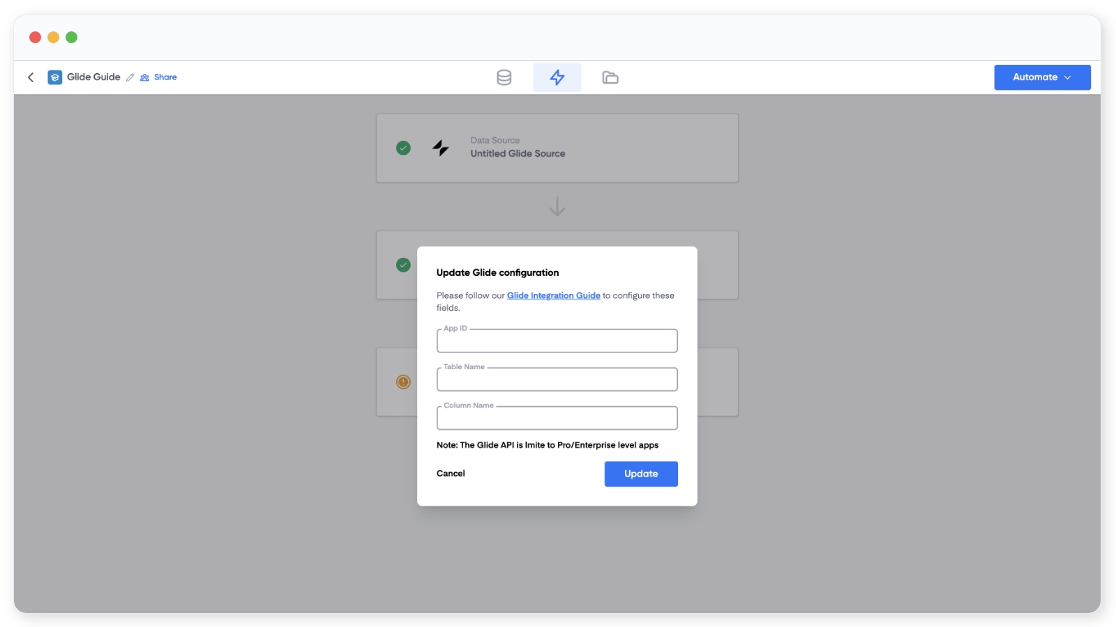 Note: The Glide API is limited to Team/Business/Enterprise level apps