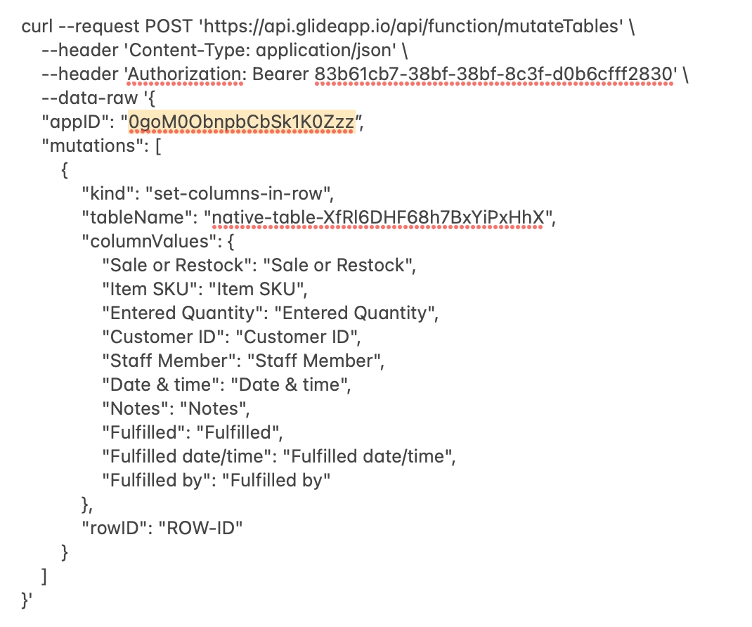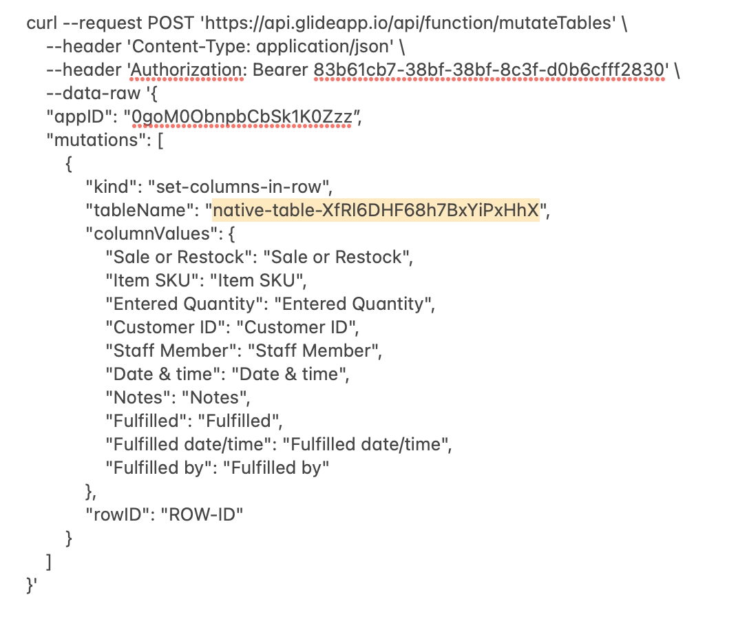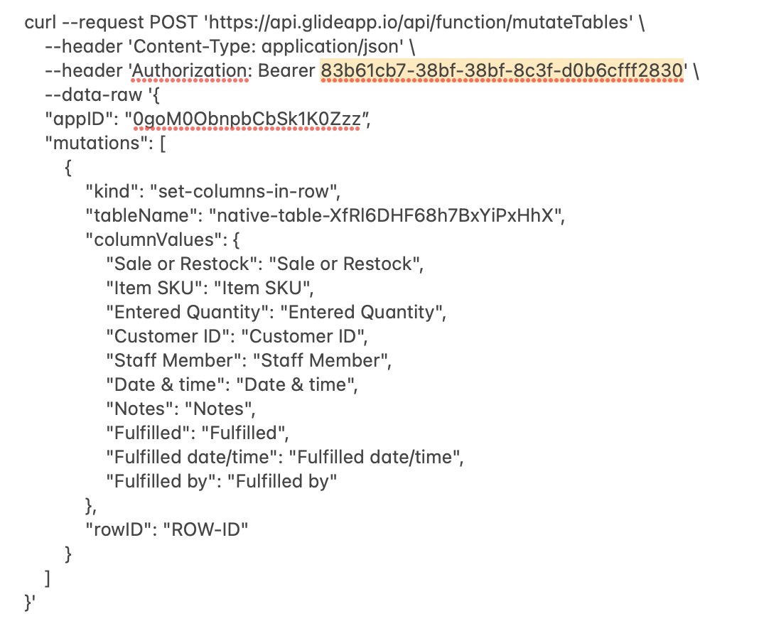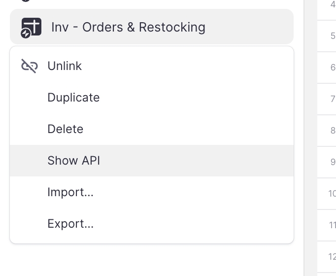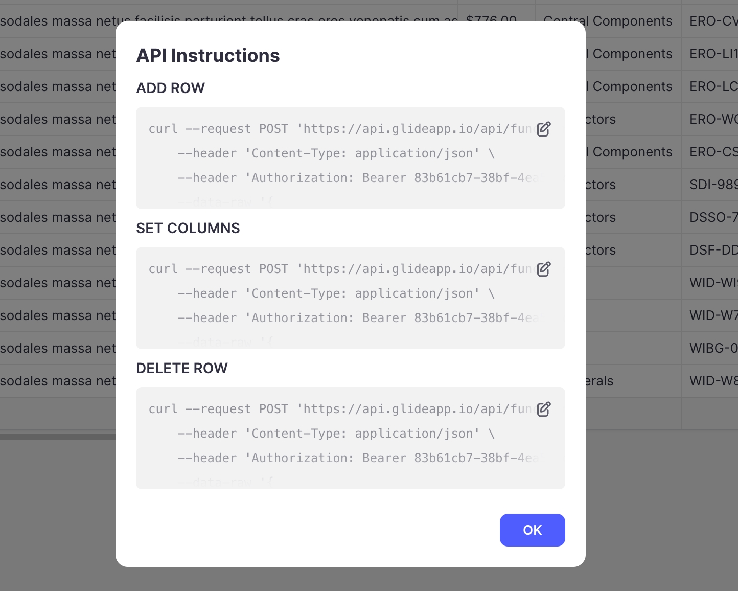 To find the Authentication token, navigate back to Glide, to the Data Editor section and right click on the table you'd like to send the document link to, and then click 'Show API':