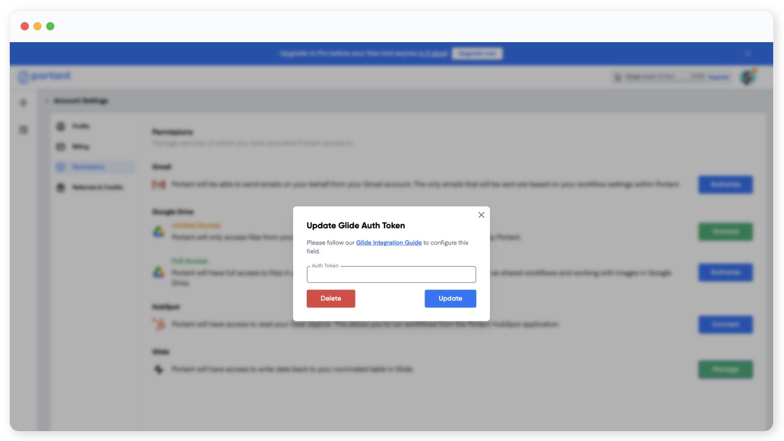 After you have selected Glide as a Source, Portant will display the steps to connect your Glide source: