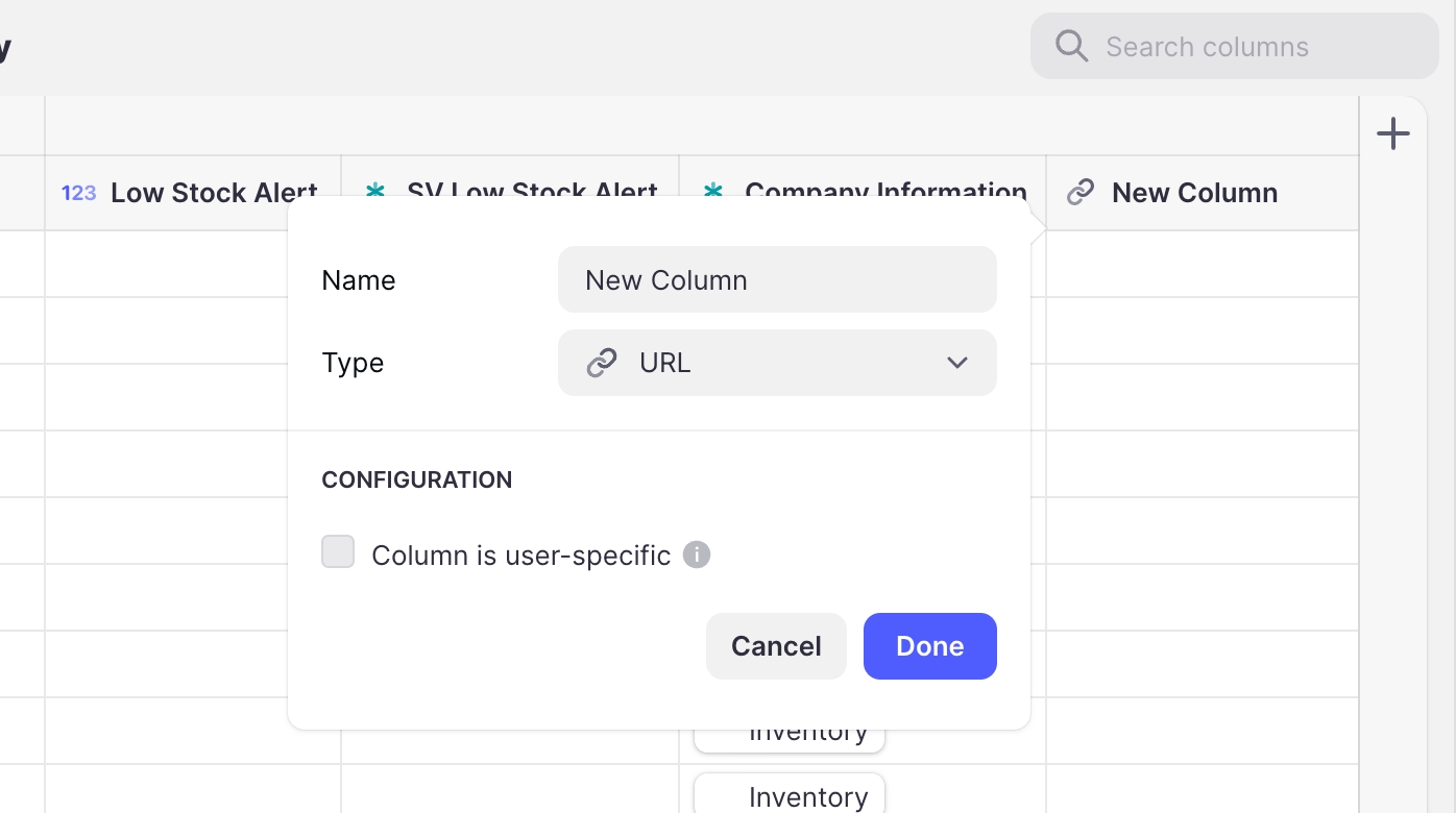 The first step is to identify a column you want to insert the document link into. If you haven't already created a column for this data, scroll to the end of the table and insert a new column