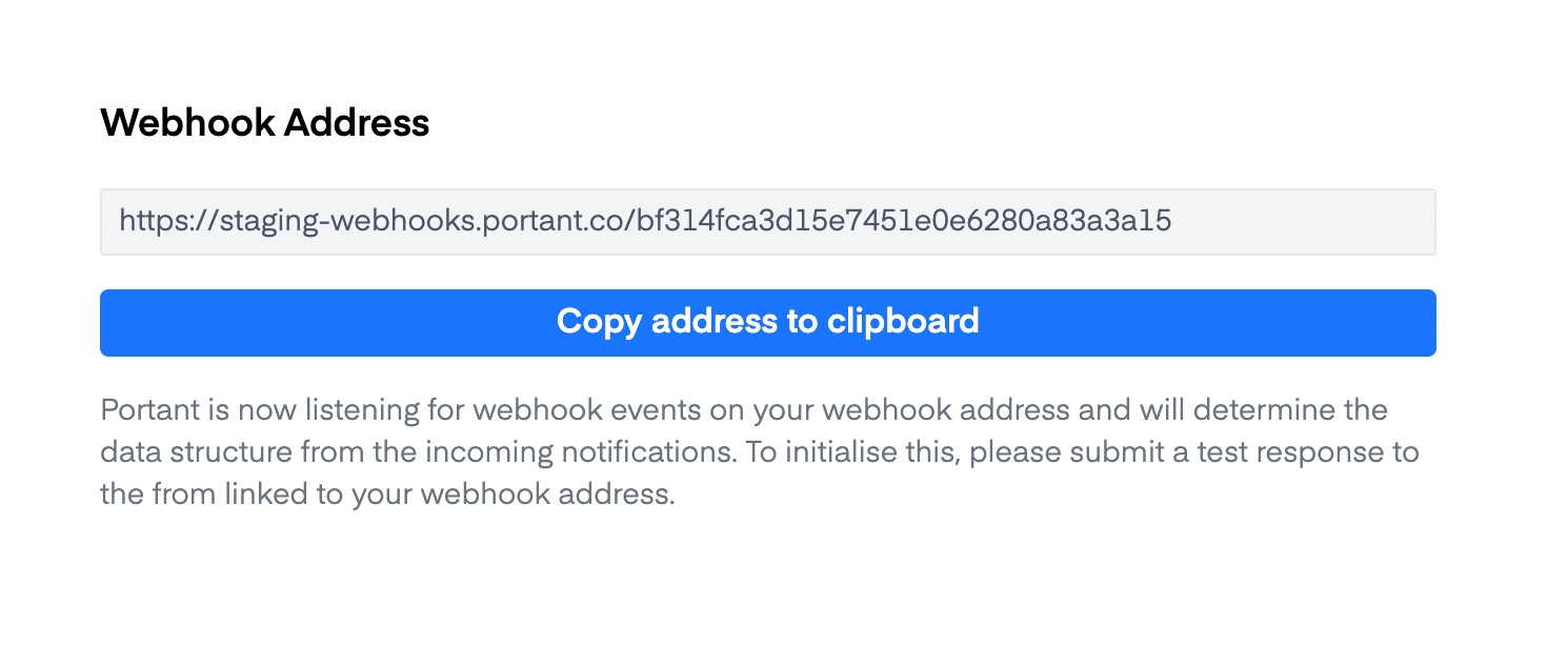 After you have selected a webhook as the source, Portant will automatically generate a unique webhook address:
