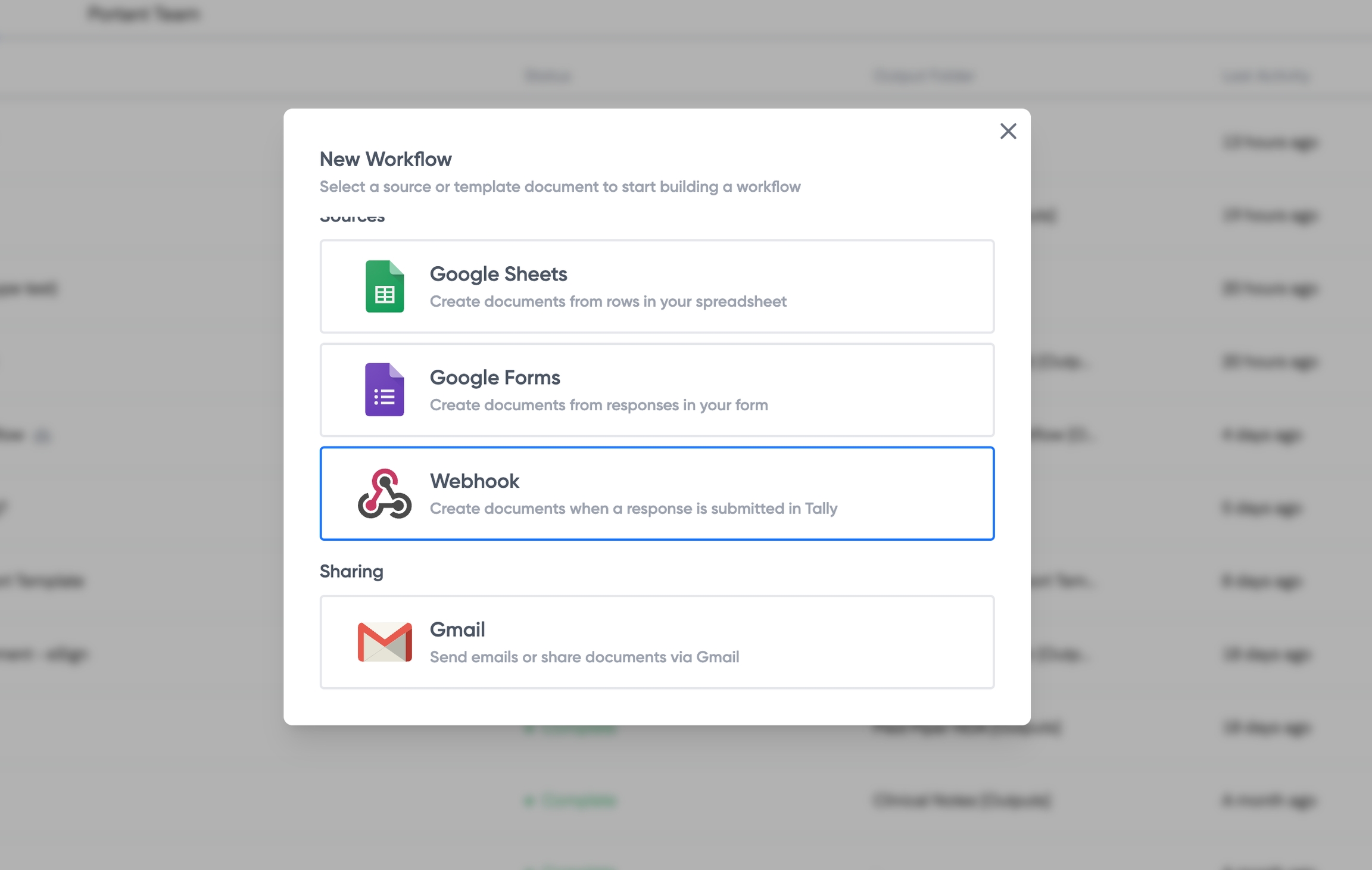 If you need to use a source we haven't integrated with yet, you can use webhooks to source data from almost any application on the internet. If an app can send data to a Webhook, you can integrate it with Portant. For instance, you can add the Portant Webhook to Tally or Typeform, so that any time a form in these applications receives a submission, a Portant workflow will be triggered.