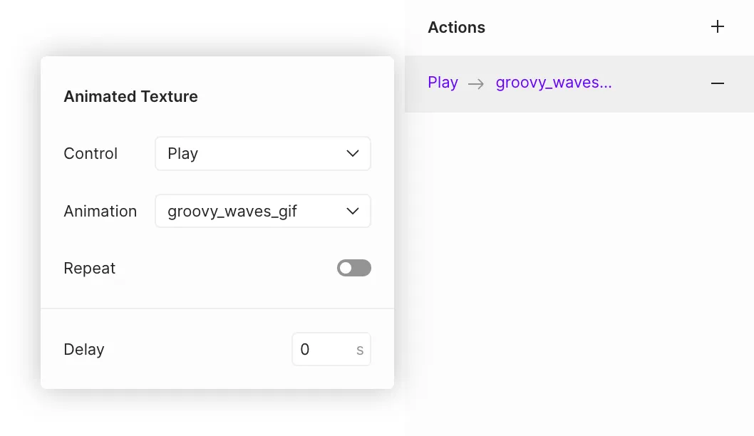 * **Repeat** — Enables continuous playback of the texture animation indefinitely.